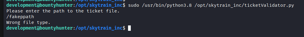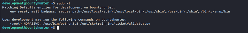 Sudo -l confirms the access to run the ticketValidator.py script/file.