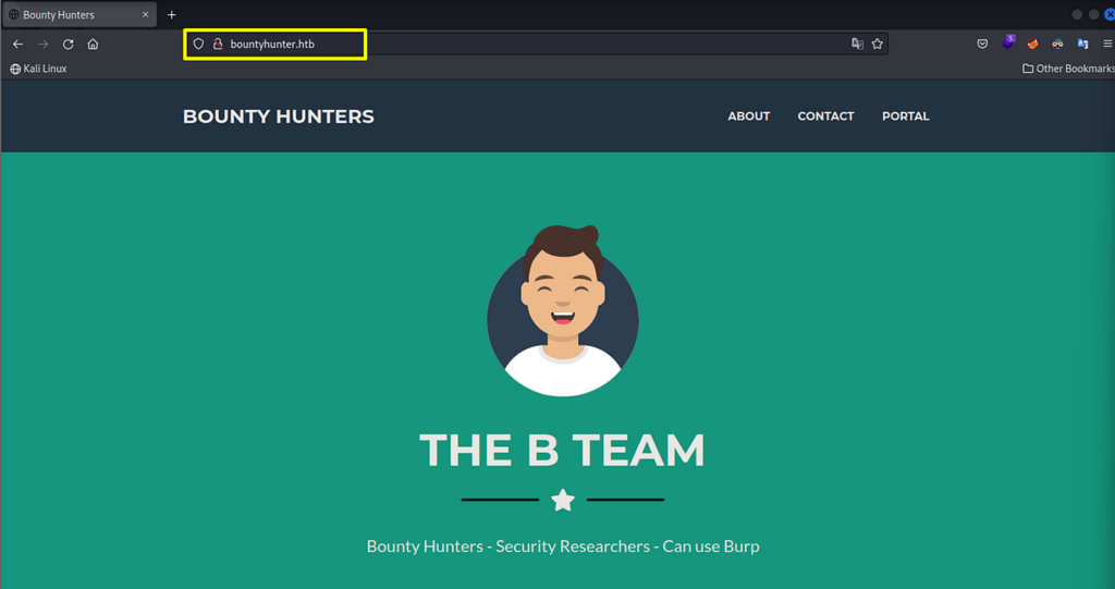 Visited web home page, contact form, source page, about page, nothing looked interesting except Portal page, will tackle in a moment.