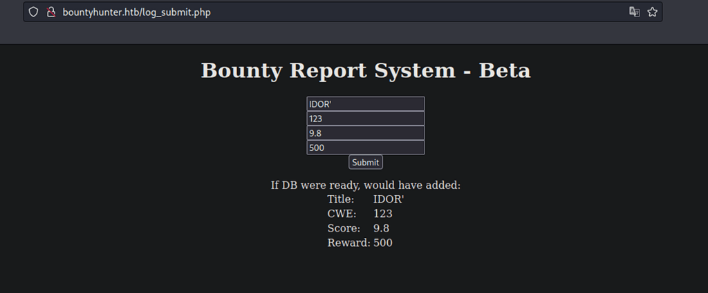 Utilizing wfuzz tool against the target, found db.php and portal.php interesting to ignite further investigation.