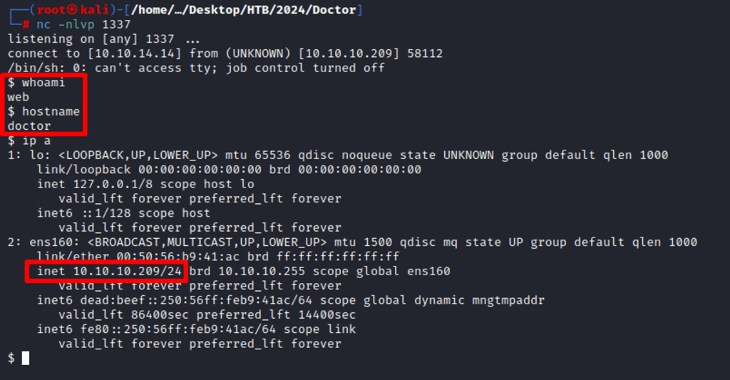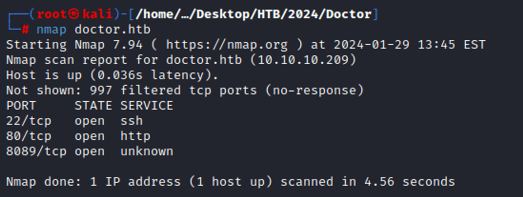 I revisited port 80 and checked the email listed on the website, I noticed an ‘s’ at the end of the doctor. So, I updated the /etc/hosts file with doctors.htb.