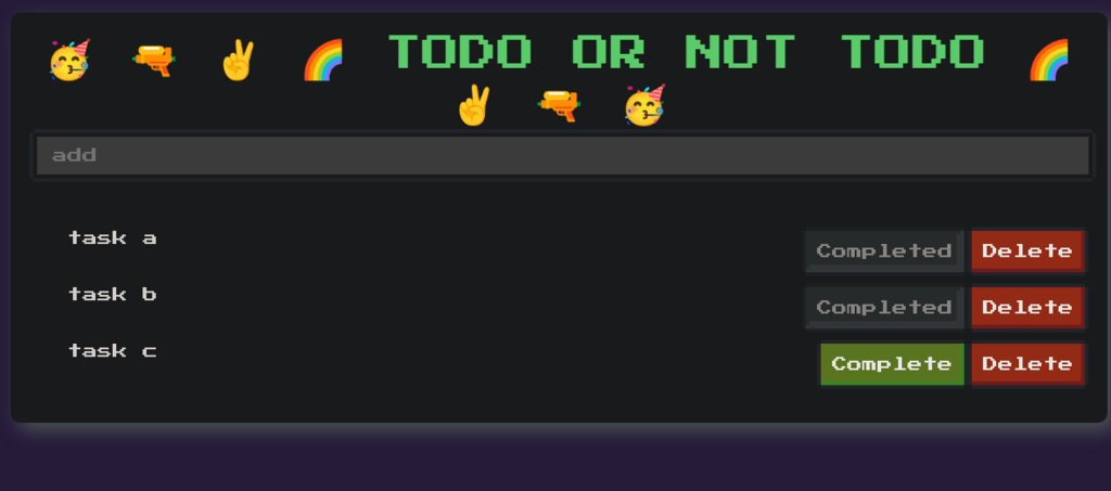 The functionality shows as to-do-list tracker. Inputted some tasks and marked some as completed.
