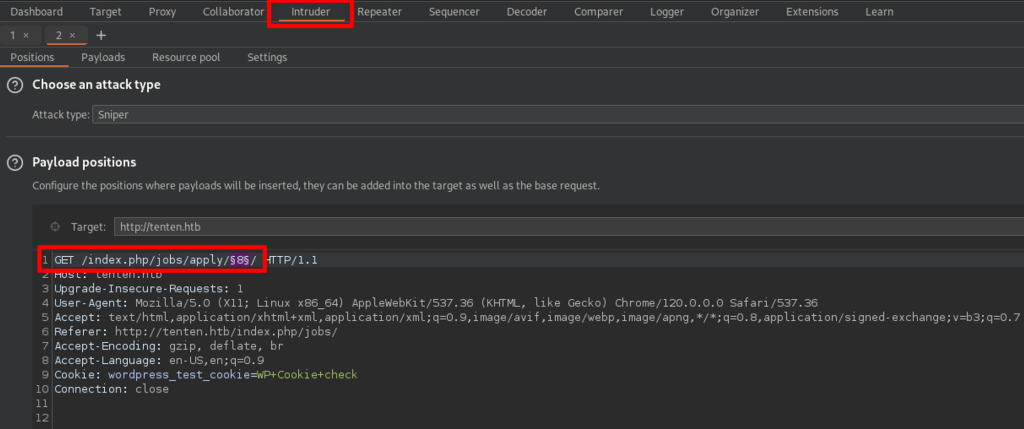 Navigating to target web application, having burp to save the requests in the background. The application is a job posting wordpress application.