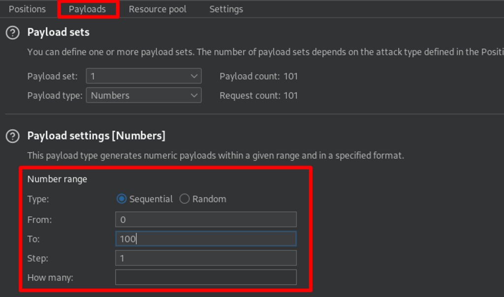 Created a payload of number from 0 to 100 and launched the attack.