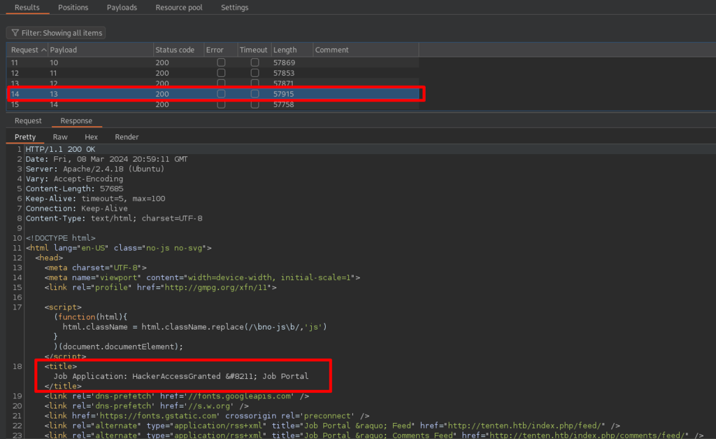 Reviewing the responses, I see page 13 has interesting Job Title HackerAccessGranted. – Okay.