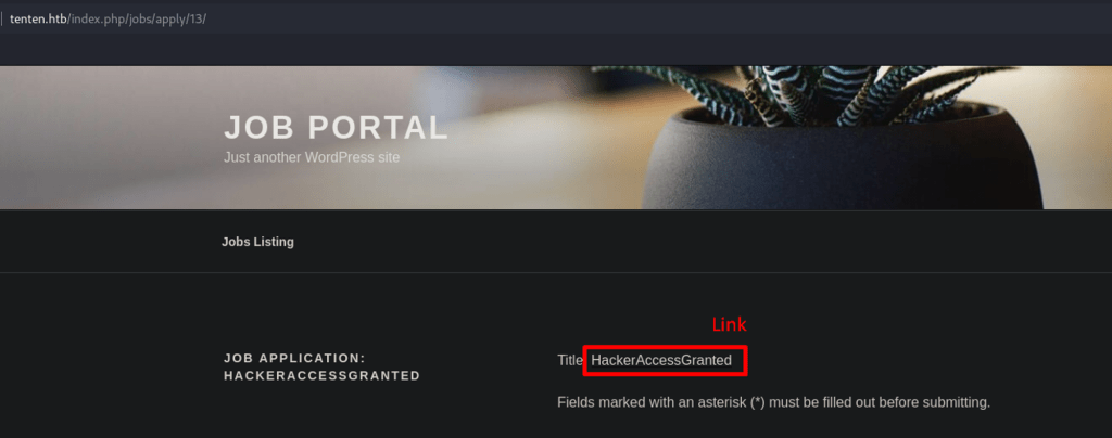Clicking on ‘Job Listing’, I see a job title for ‘Pen Tester’.