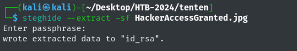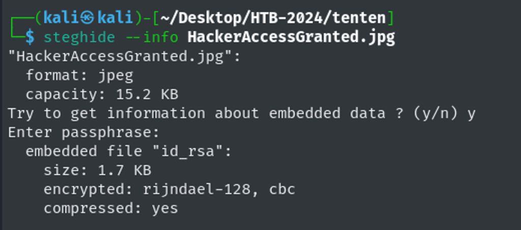 Using the tool steghide, Isee id_rsa is compressed in this image – how interesting.
