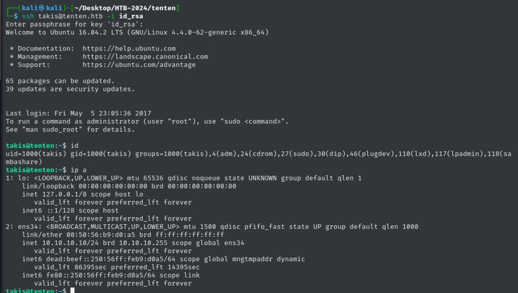 Trying to ssh as Takis user: Success!