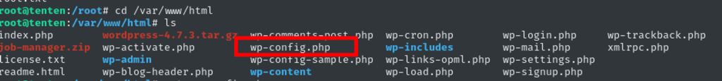 coming to web directory, I see many interesting page and configs – the wp-config.php worth looking.