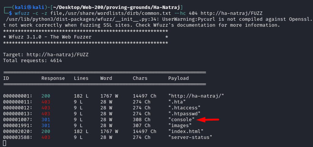 After Fuzzing the webpage using the common wordlist, I found the file “console” in the web directory, it seems interesting.