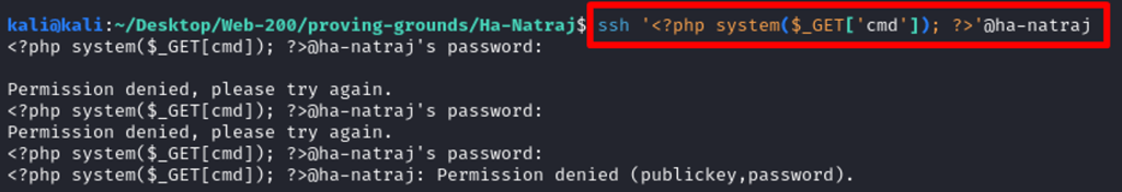 Once the LFI was confirmed, attacker located the auth log and generated ssh logs by making logging attempt, once ensured logs are generated and saved on target server, attacker poisoned the log with php on-liner to be able to execute commands.