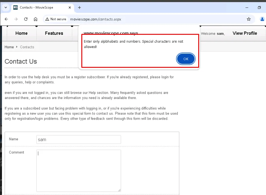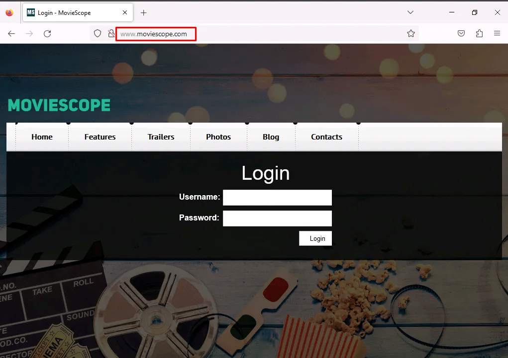 Navigating to http://www.moviescope.com – log with a valid user.
