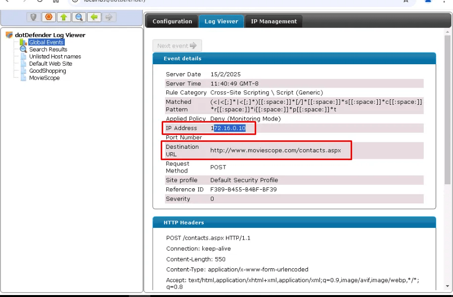 By clicking on the alert, it shows the details of the attack.