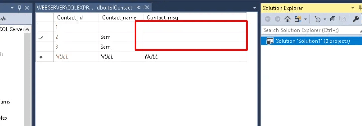 As the contact page input data is stored in SQL server, first step is to remove the stored XSS from the database. Lunch SQL Server Gui.