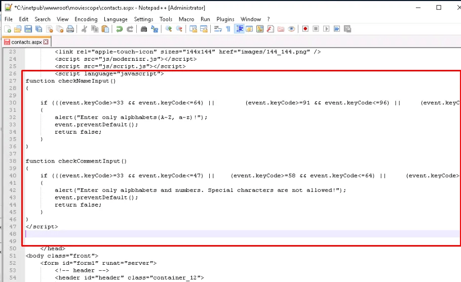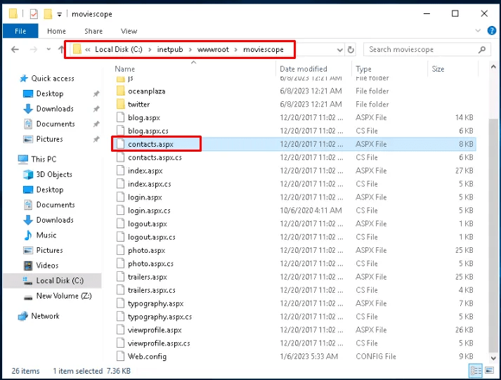Navigate to the web root and edit contacts.aspx file
