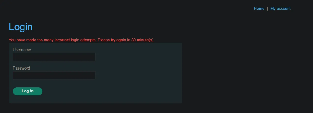 As is common in many applications, after three consecutive failed login attempts, the account is temporarily locked for 30 seconds. If incorrect attempts continue, the lockout period is progressively extended.
