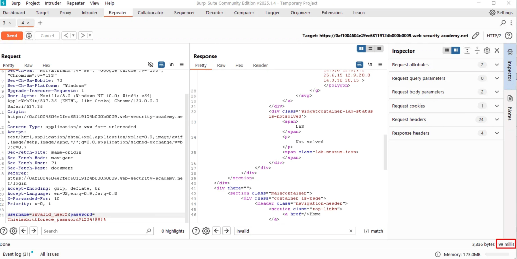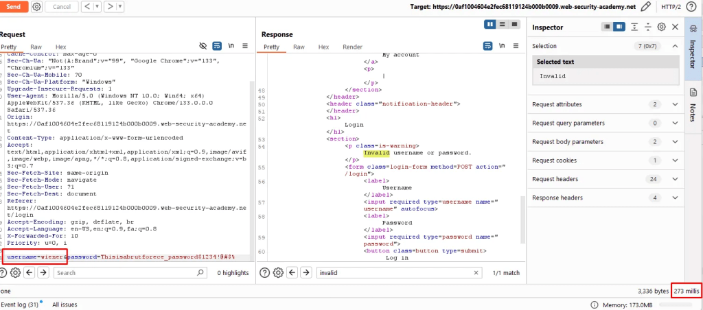 Look for response received – even though the response size is a little bigger than initial benchmark, still it can be assumed it is the valid user.