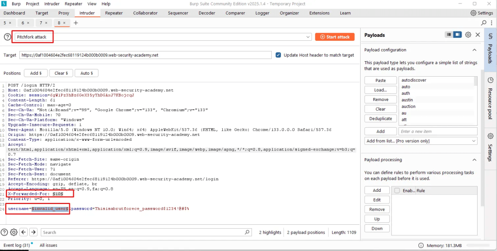 Some web applications implement IP-based rate limiting to prevent brute-force attacks by restricting the number of failed login attempts per IP address. However, if the application relies on X-Forwarded-For for logging or blocking IPs, attacker can manipulate it in several ways.